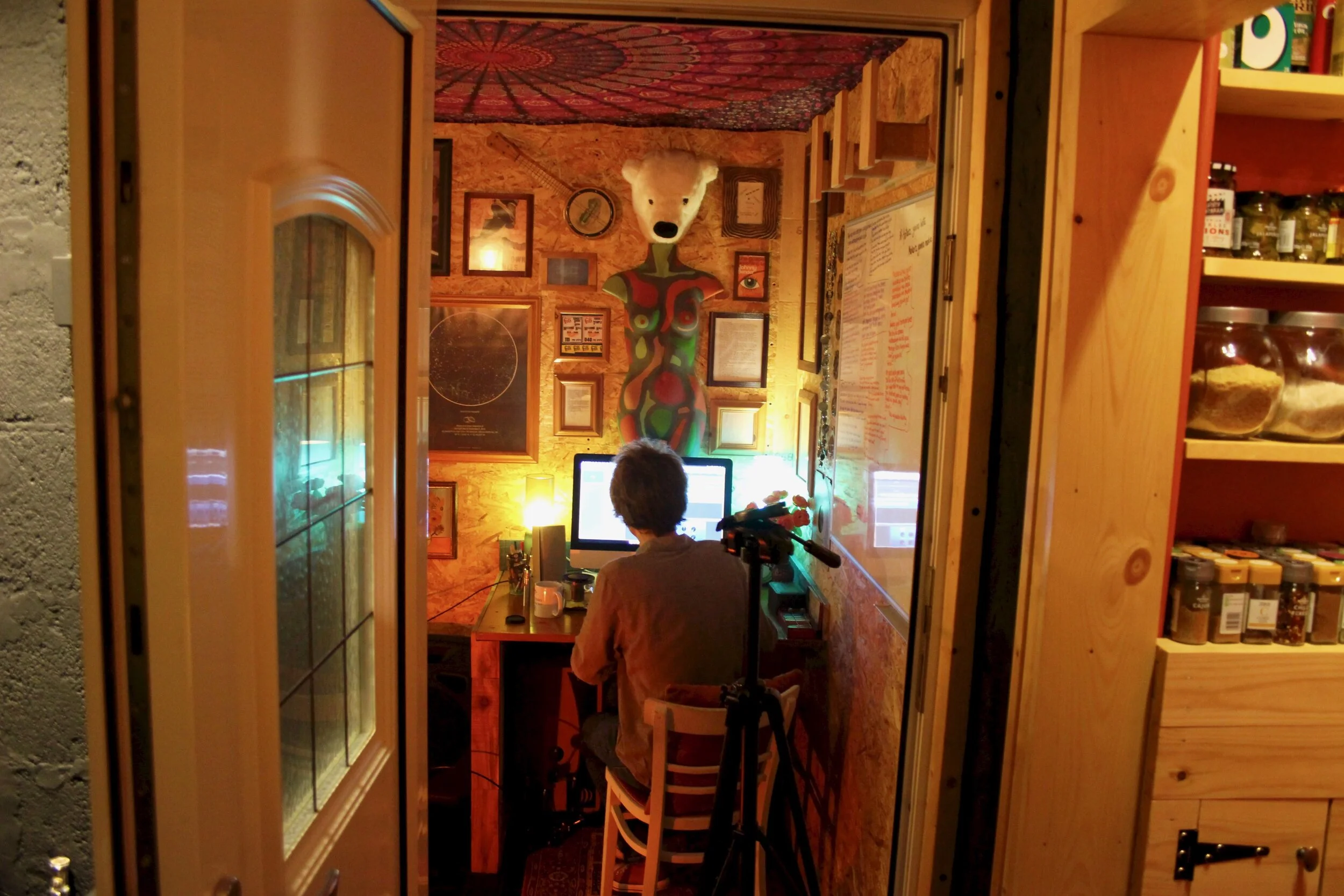 Below is a new song called Home. As per, we’ve recorded a live version in The Nook, which is a soundproofed music room that was once a garage, one of those garages that is part of the house, a thing that was a thing apparently when the house was built in the sixties. When we first looked at the house we were told some people around here had made their’s into a kid’s bedroom/playroom or the like. Us being us, we wanted a music playroom, so that’s what we did, the first space in our new home we sorted, because.